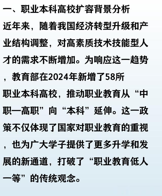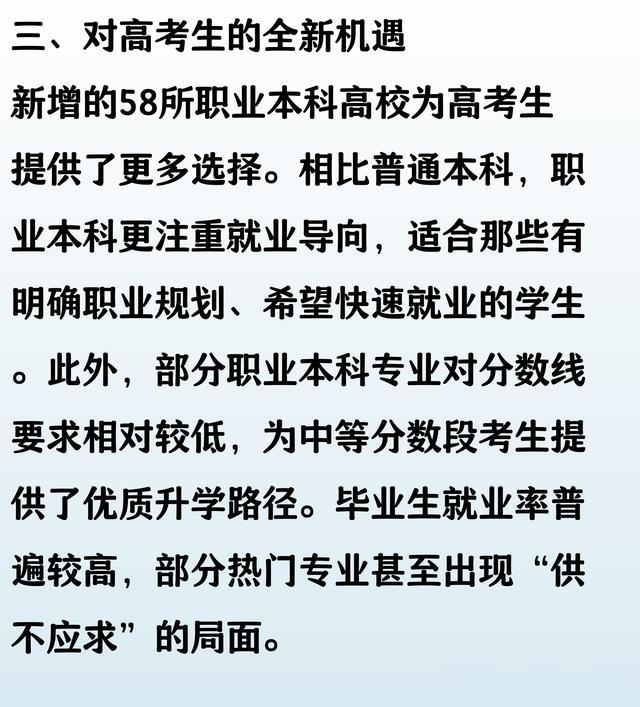 今年,新增58所职业本科高校为高考生打开了全新的成长通道。职业本科不仅打破了“重学术、轻技能”的传统观念,更以紧贴产业需求的课程体系,为学生提供了理论与实践兼备的学习环境。 面对日益多元的就业市场,这一新赛道无疑为有志于实践与创新的学子,提供了更具前瞻性的选择。未来,选择职业本科或许正是实现自我价值与社会需求双赢的明智之举。