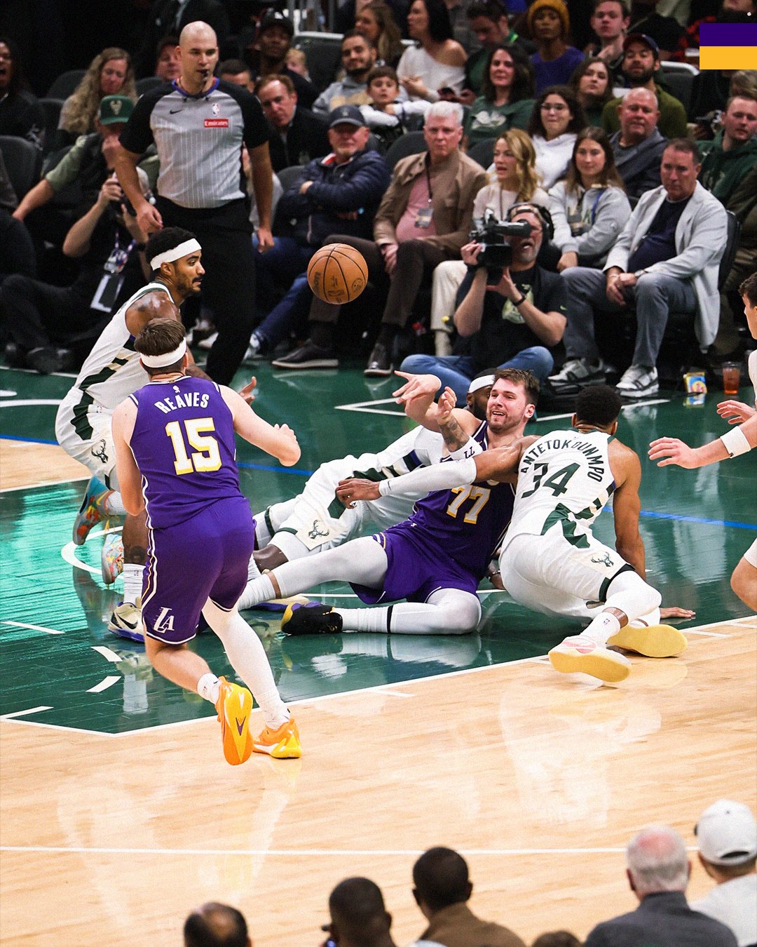 末节东契奇下场后坐在替补席吃东西补充体力,面对雄鹿的反扑,里夫斯输送三分,东契奇连续造犯规罚球得分,3分35秒东契奇外线造库兹马犯规,三罚全中彻底杀死比赛,字母哥下场提前认输,最终湖人稳稳拿下胜利。