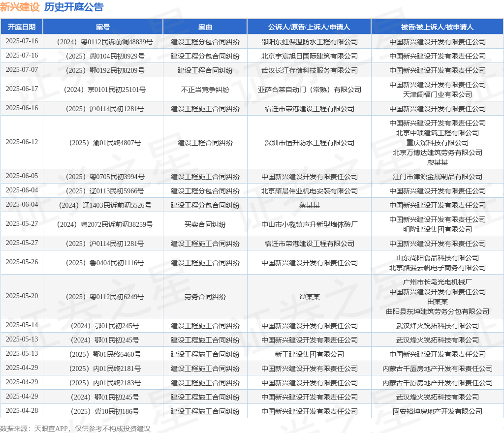 本站消息亿利金融亿利金融,根据天眼查APP显示,近日公布了一则中国新兴建设开发有限责任公司作为被告/被上诉人的开庭公告,详细内容如下: