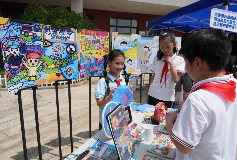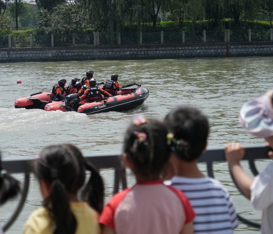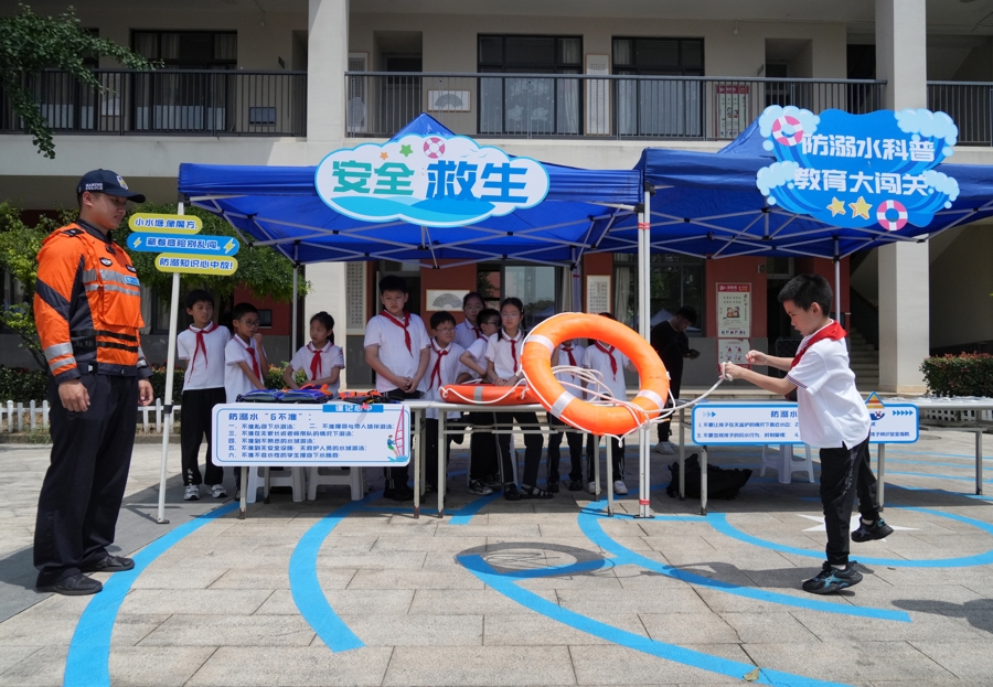 上海市公安局边防和港航分局水上应急救援队、青浦区城搜应急救援保障中心在盈浦街道环城水系水城门进行水上应急搜救科目展示,并与青浦公安分局、杨浦区青少年科技站为学生开展防溺水安全知识讲座、救生设备使用教学、急救装备科普等项目体验。通过“看一看、听一听、摸一摸、穿一穿”的多种体验方式,让防溺水安全知识入脑入心。