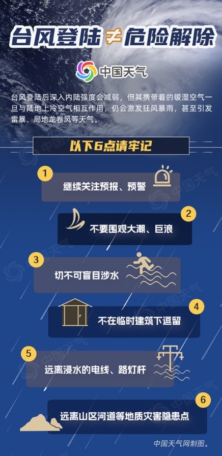 提醒大家,台风“丹娜丝”对江南中东部、江淮等地高温有缓解作用,但它登陆后在内陆影响时间较长,将给福建、江西、湖南、广东等地带来持续性降雨,需加强防范强降雨可能引发的山洪、滑坡、泥石流等次生灾害。