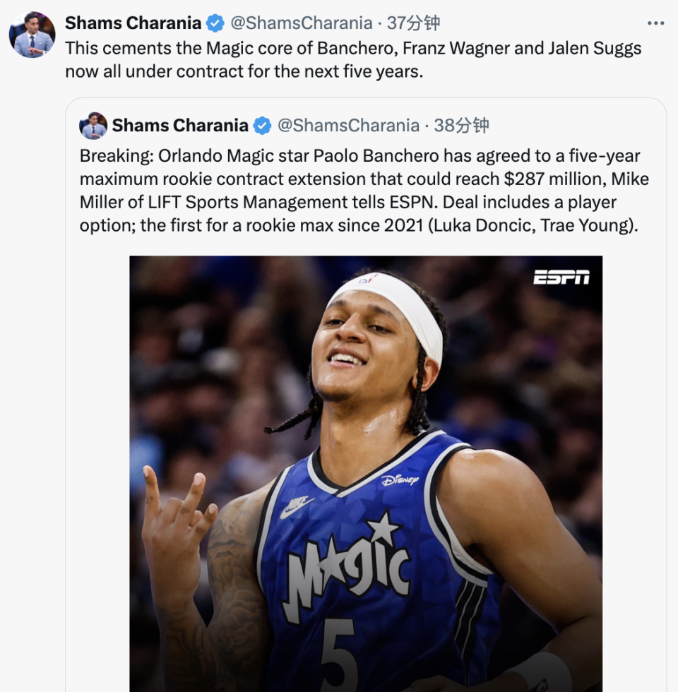 魔术在过去一年时间先后顶薪续约小瓦格纳和班凯罗,并且同样为萨格斯提供了5年合同,确定了三人未来的核心地位,他们势必要在东部里闯出一片天。