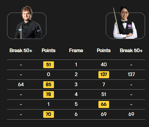 虎扑09月12日讯2025斯诺克英格兰公开赛128进96轮次,中国香港球员吴安仪在对阵利亚姆-海菲尔德比赛中,创造女球员单杆最高分记录。
