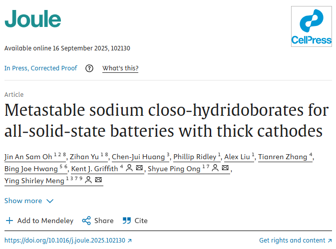 来源: 用于厚阴极全固态电池的亚稳态环状氢化硼酸钠
