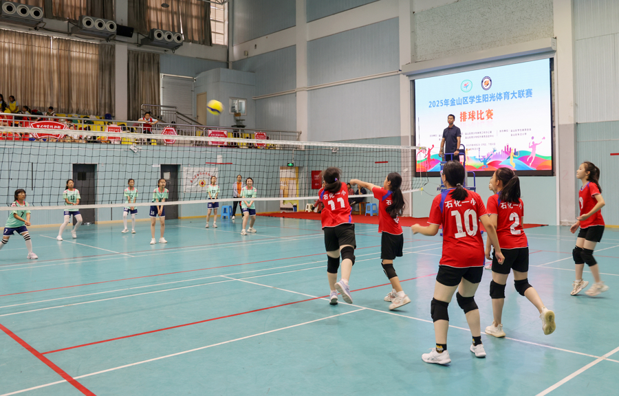 6月23日富才配资,2025年金山区学生阳光体育大联赛排球比赛在金山区朱泾小学体育馆开赛。